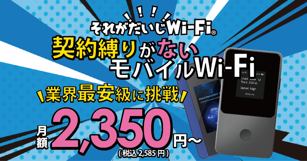 レンタルの場合、申し込みから端末到着まで最短1日~2日で利用できるサービスが多く、急な利用でも対応可能です。また、プランによっては往復送料無料のケースもあります。