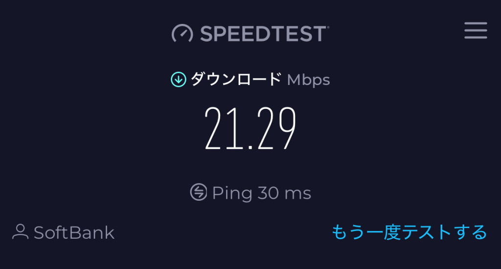 ….21Mbps?なーんだ、もっと速いかと思ってたにゃ。