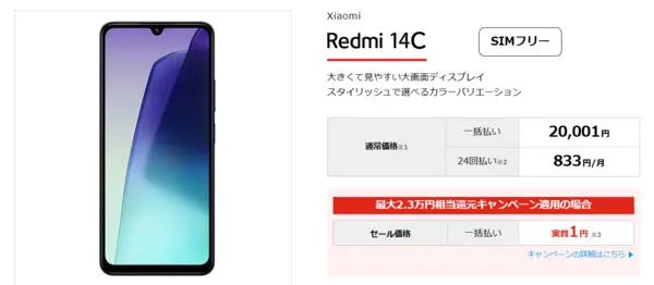 他社からのお乗り換え+シンプル3 M/Lへのご加入+一括払いで21,996円(税込)が1円(税込)で購入できます。