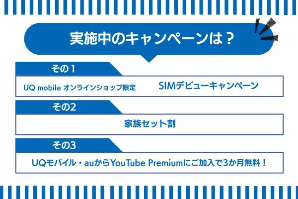 UQモバイルをお得に申し込めるキャンペーンをぜひチェックしてください!