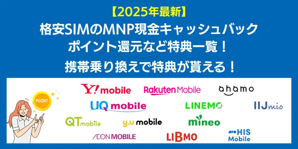 【2025年11月最新】格安SIMのMNPキャッシュバック特典一覧!携帯乗り換えでポイントが貰える!