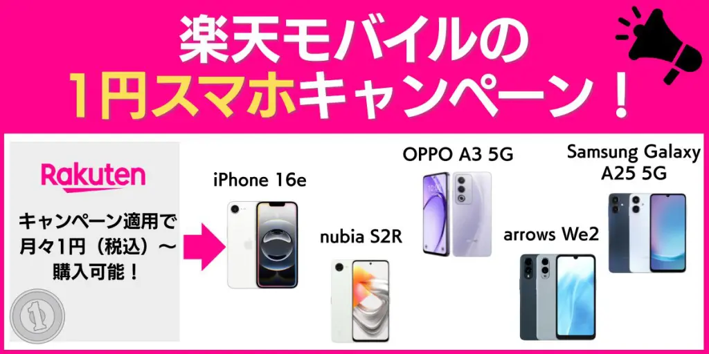 【2025年12月最新】楽天モバイルの1円スマホキャンペーン!いつまでに購入するのがお得?