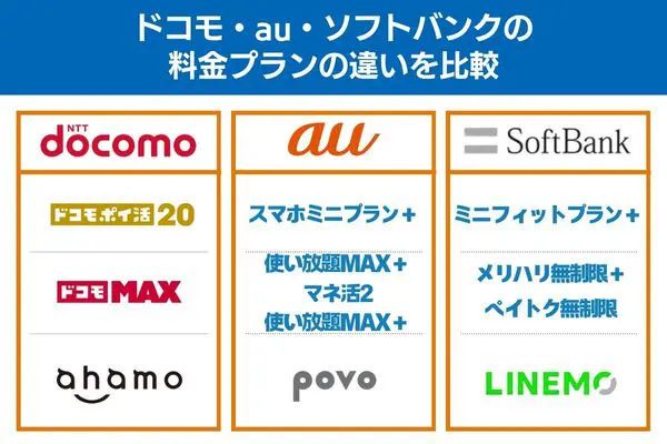 - ドコモ・au・ソフトバンクは3つの料金プランを用意