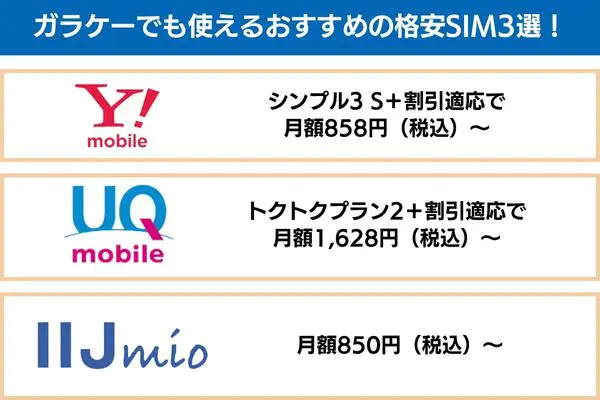 ガラケーでも使えるおすすめの格安SIMを3社ピックアップしました。