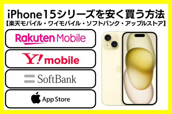 iPhone15シリーズを安く買う方法【楽天モバイル・ワイモバイル・ソフトバンク・アップルストア】