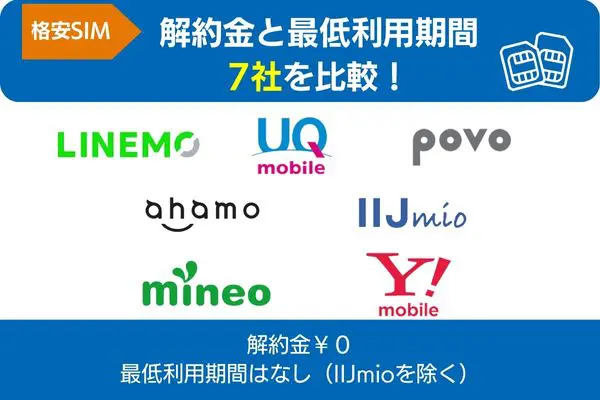 本記事では解約金が無料の格安SIMを7社紹介します。