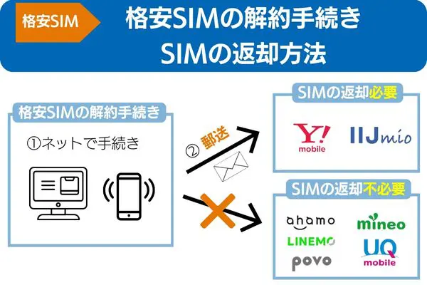 解約後使用していたSIMを返却する場合は、主に郵送で行います。