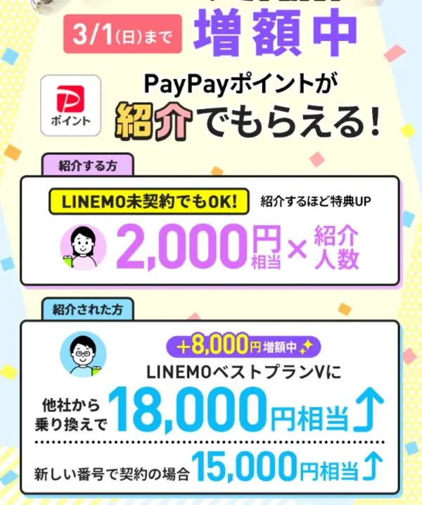 LINEMOの10,000円・3,000円相当のポイントがもらえる「PayPayポイントあげちゃうキャンペーン」は、不定期に開催されているキャンペーンです。