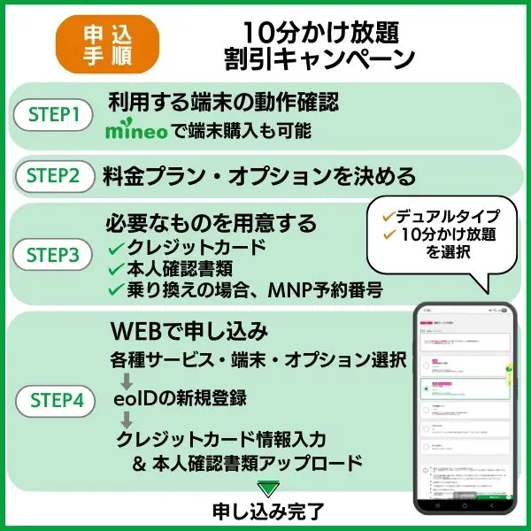 「10分かけ放題割引キャンペーン」に申し込む流れは以下のとおりです。