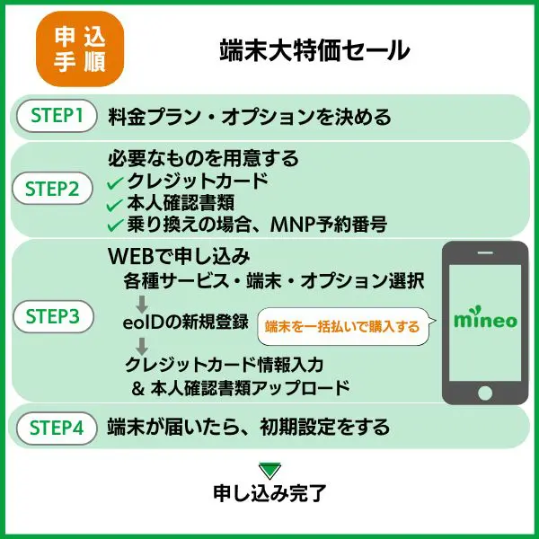他社から乗り換える場合に、端末大特価セールを利用する流れは以下のとおりです。