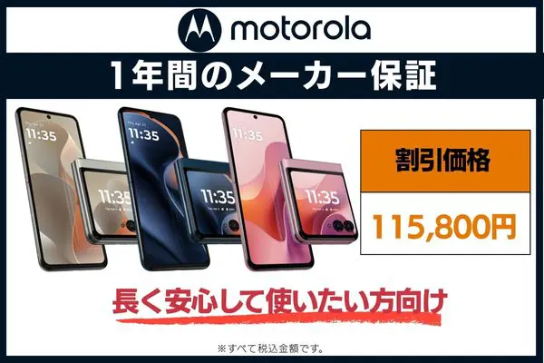 | モトローラ公式 | 135,800円 ↓ 115,800円 | 2025年12月1日までの期間限定 |