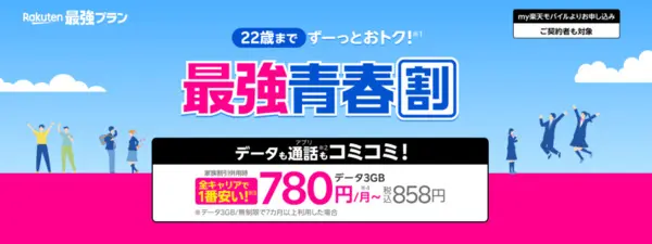 楽天モバイルでは、13歳〜22歳までの学生向けに「最強青春割」が用意されています。