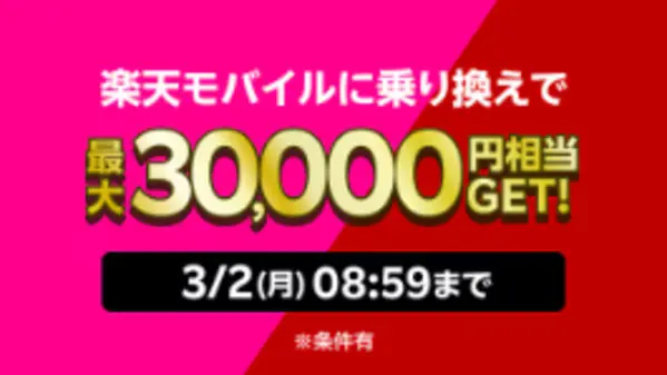 - 最大30,000円相当GET! 楽天モバイル × 楽天市場 キャンペーン