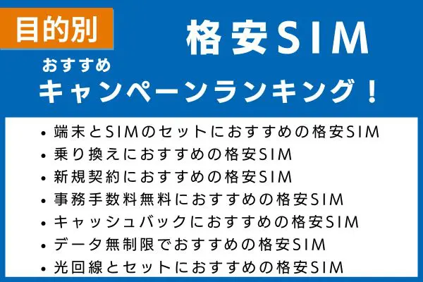 おすすめの格安SIMキャンペーンランキングを以下7つの目的別に分けて解説します。