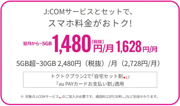 • トクトクプラン2が10ヶ月間実質480円(税抜)/※(税込728円)