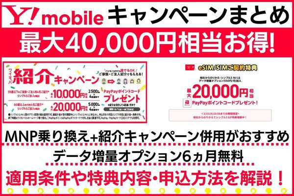 ワイモバイルのキャンペーンまとめ|最大40,000円相当お得