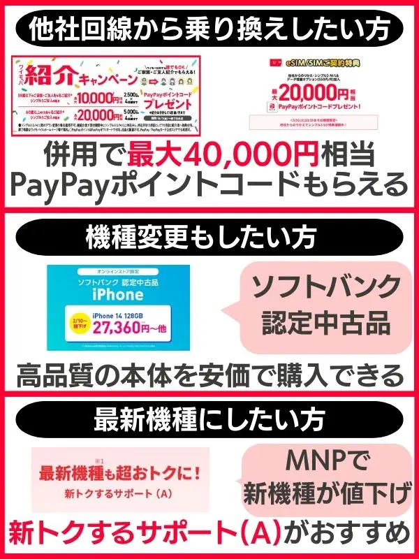 - 紹介キャンペーンとSIM契約キャンペーンの組み合わせで、最大40,000円相応のPayPayポイントコードを受け取れる可能性がある
