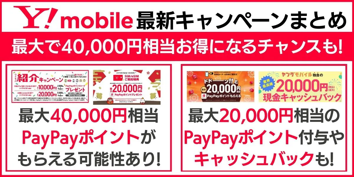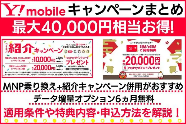 ワイモバイルのキャンペーンまとめ|最大40,000円相当お得