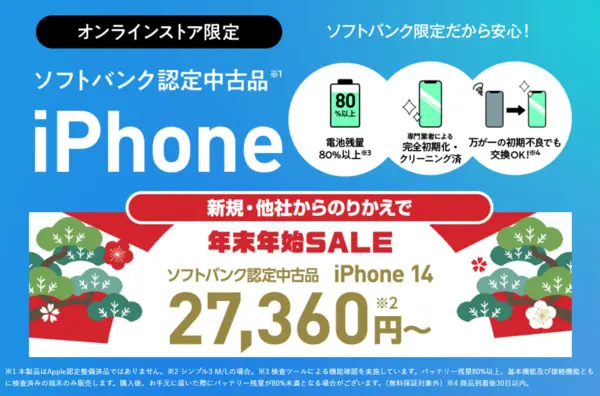 - オンラインストア限定!ソフトバンク認定中品iPhoneがお得