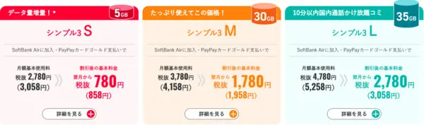 シンプルプラン3 S (5GB) | 基本:3,058円 割引後:858円 |