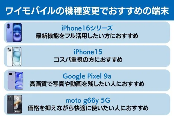 ワイモバイルの機種変更でおすすめの端末