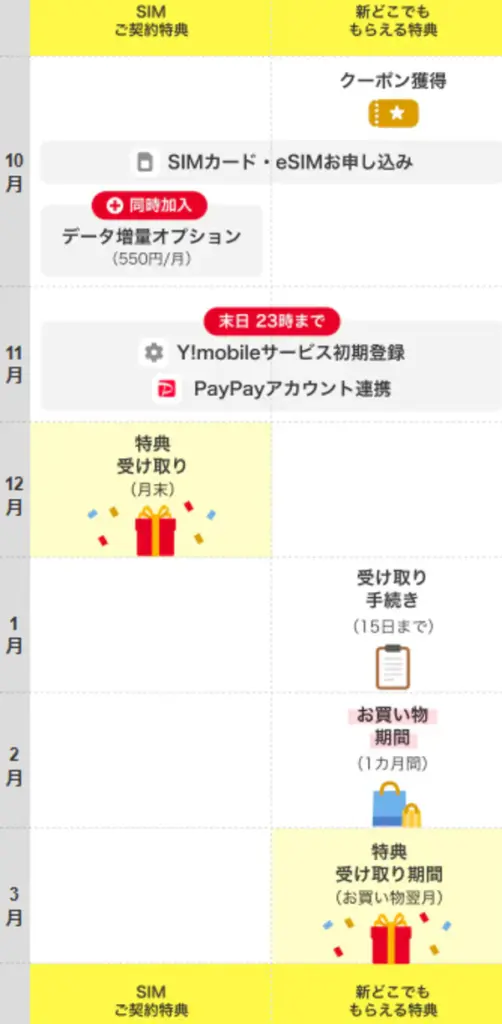 ワイモバイルとPayPayアプリを連携させると、上記スケジュールで得点を受け取れます。