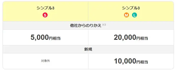シンプルSは500円相当、シンプルM/Lで6,000円相当のPayPayポイントが後日付与されます。